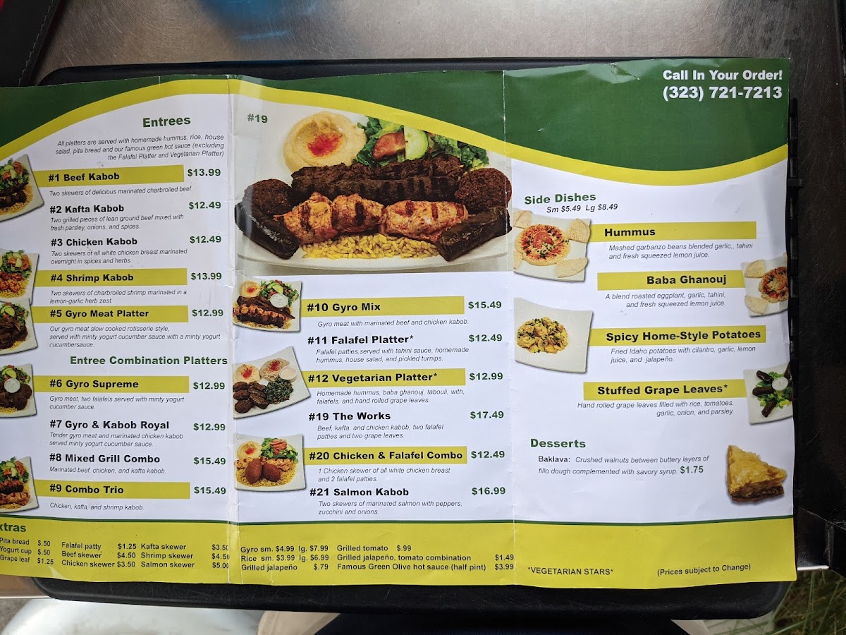 For those who want to sample a bit of everything, the Mixed Grill Combo or the Gyro & Kabob Royal are excellent choices, providing a delightful assortment that satisfies a range of cravings. Vegetarians will also find a variety of appealing options, such as the Falafel Platter and the Vegetarian Platter, making The Green Olive an inclusive dining spot for everyone.